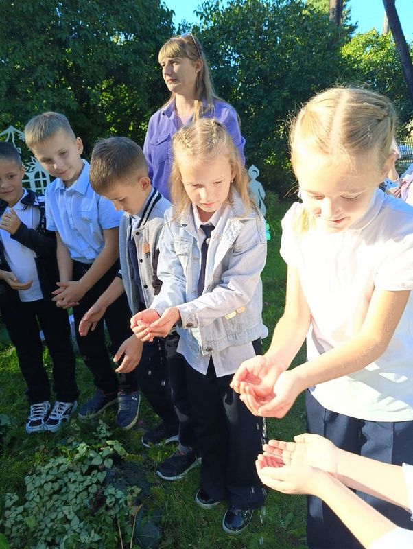 Во время акции учащиеся набирали воду в ладони, сложенные лодочкой, и поливали цветы и деревья из рук. Этот символичный жест выражает общую скорбь и сострадание к жертвам терроризма, а также нашу решимость противостоять этой угрозе.