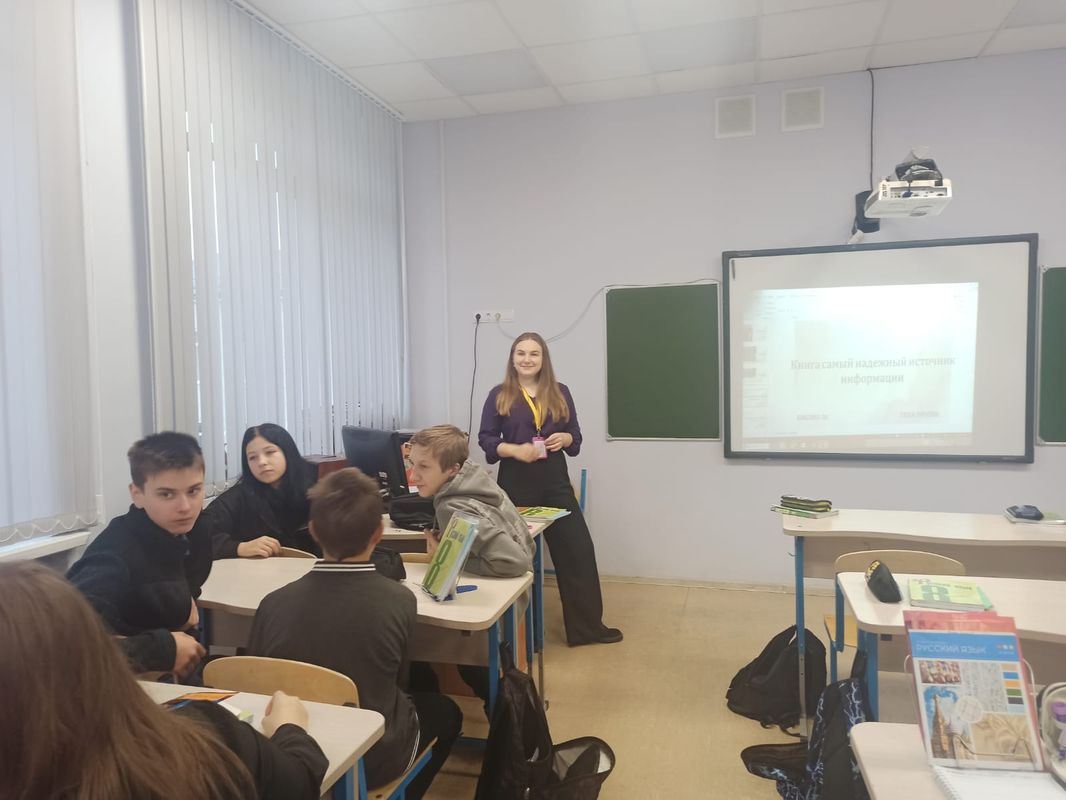 С учащимся 8-а класса и их классным руководителем Ольгой Анатольевной Екатерина Сергеевна провела дебаты «Почему важно читать в эпоху цифровизации?». Ребята пришли к выводу, что, несмотря на все большее распространение электронных средств связи, обеспечивающих доступ к огромному массиву информации, классическая бумажная книга не утратила своего значения и остается востребованной в обществе.