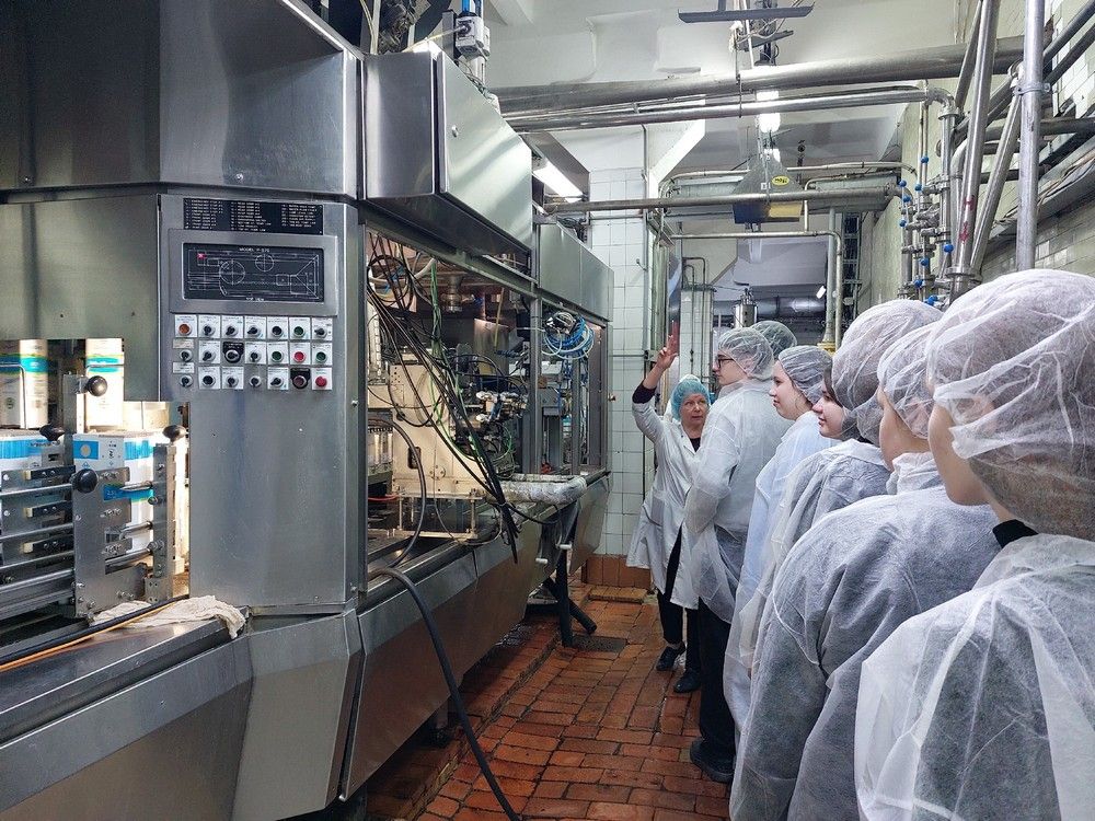Школьники познакомились с историей предприятия и требованиями к качеству продукции, побывали в производственных цехах и увидели, как изготавливают творог, сметану, кефир и минеральную воду "Карельская жемчужина".
